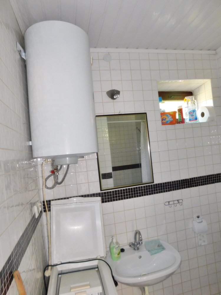 W pokoju dziennym kominek opalany drewnem wykorzystywany jako źródło ciepła – z rozprowadzeniem ciepłego powietrza. Woda użytkowa uzyskiwana przy pomocy bojlera elektrycznego.