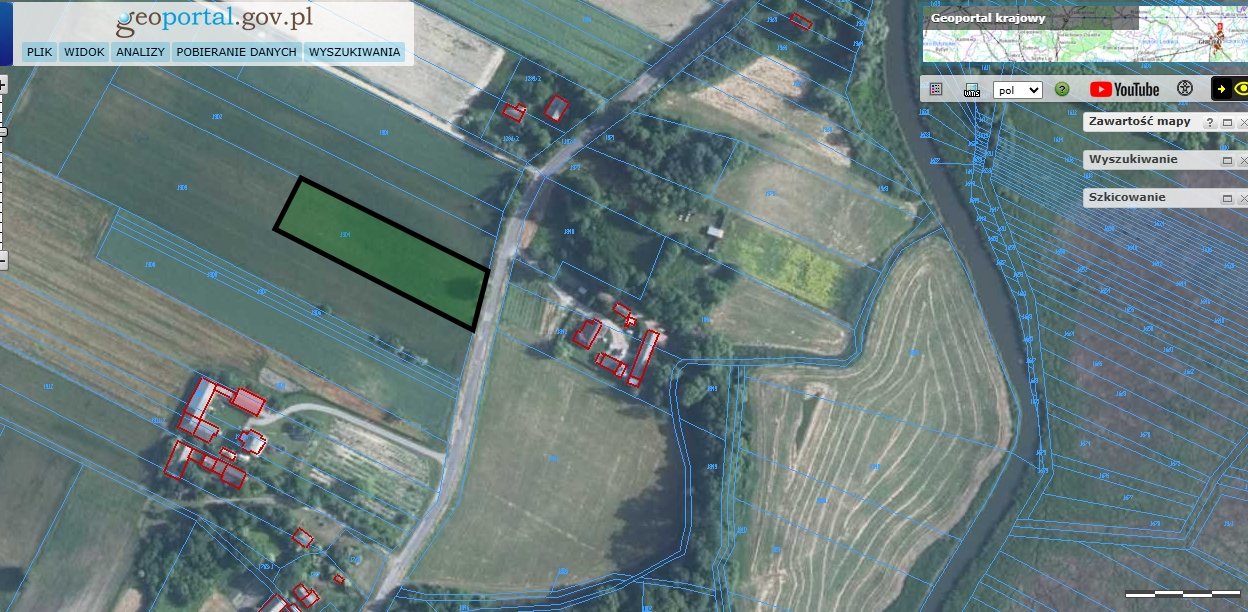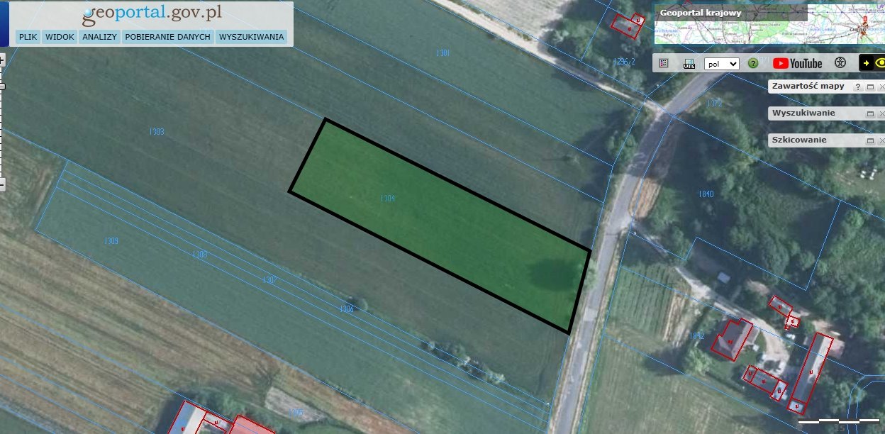 Działka niezabudowana numer 1304, o powierzchni 3200 m2 zgodnie z wypisem z rejestru gruntów.