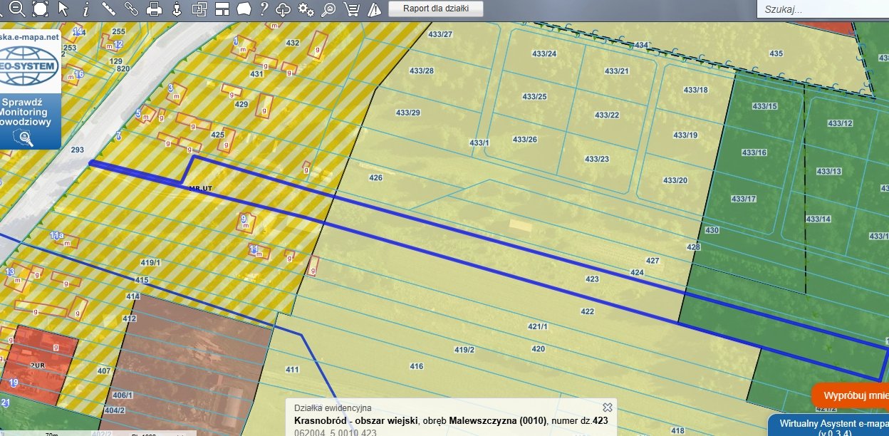 Zgodnie z Miejscowym Planem Zagospodarowania Przestrzennego działka położona jest na terenie zabudowy zagrodowej, usługowej turystycznej (MR, UT), a także częściowe na terenie rolniczej przestrzeni produkcyjnej oraz z przeznaczeniem do zalesienia.