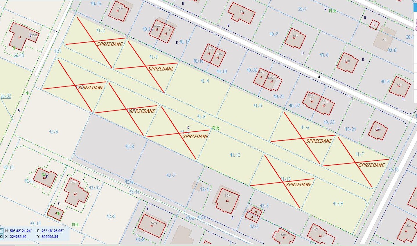Nr 41/5 powierzchnia 0,0959 ha, wymiary: 25 m x 38 m - cena:182 200 zł (190 zł/m2)