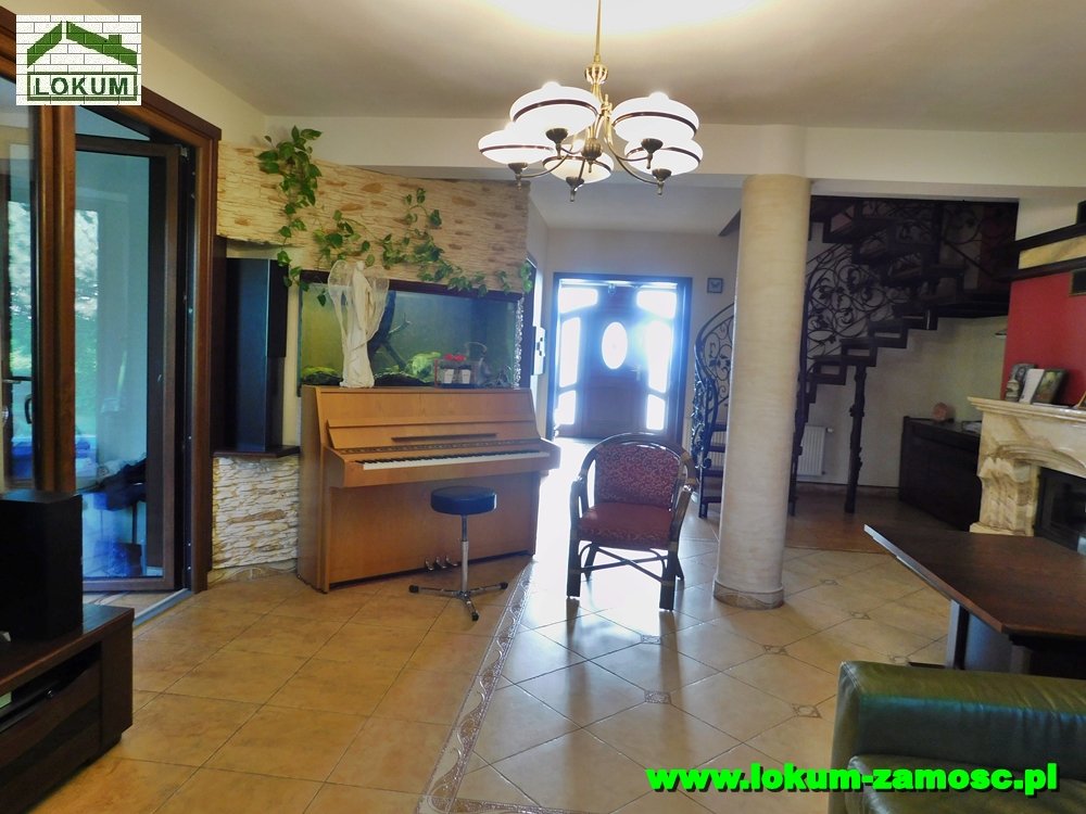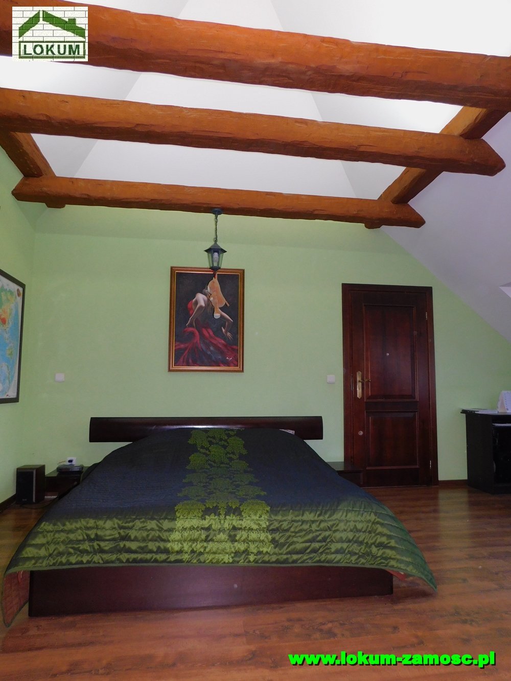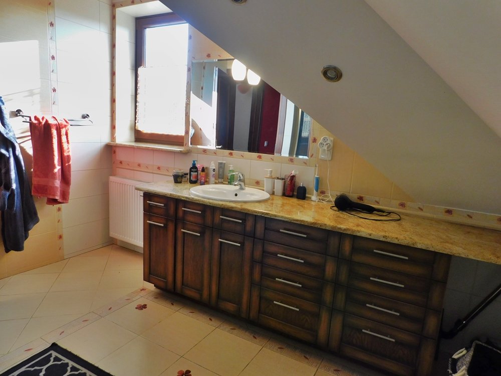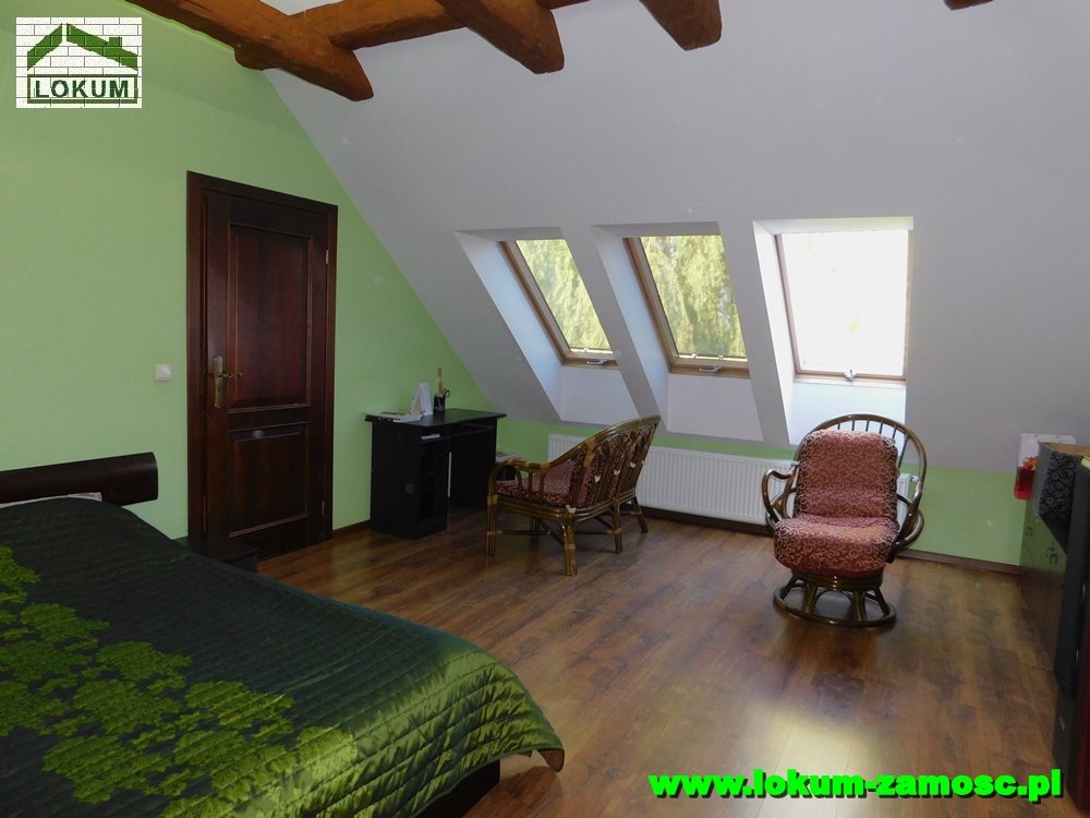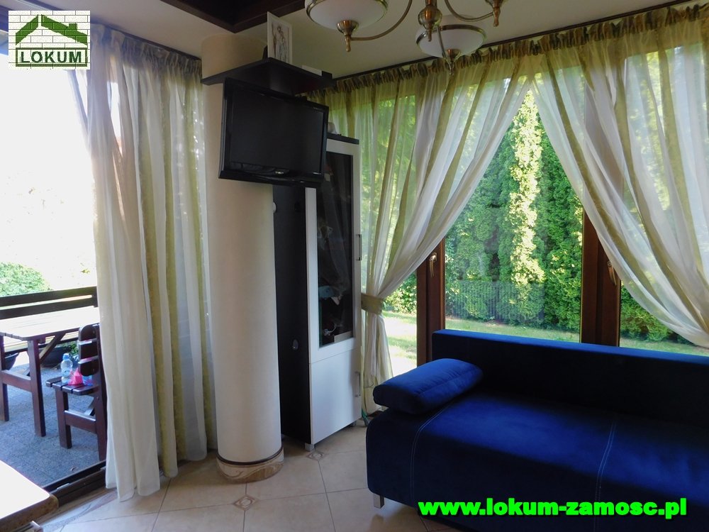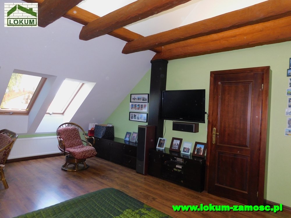 Parter stanowi reprezentacyjna strefa dzienna w skład której wchodzi przestronny jasny salon z kominkiem, oraz oranżerią z której można wyjść na taras. Dodatkowo na parterze znajduje się kuchnia, wc i ganek. Komfortowa strefa nocna mieści się na poddaszu, dokąd prowadzoną ładnie wykonane kute schody. Na poddaszu znajdują się 3 sypialnie, w tym jedna z wyjściem na balkon, oraz łazienka z wc. Dodatkowa duża sypialnia z łazienką i garderobą usytuowana jest na półpiętrze.
