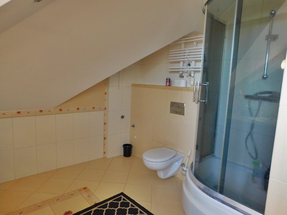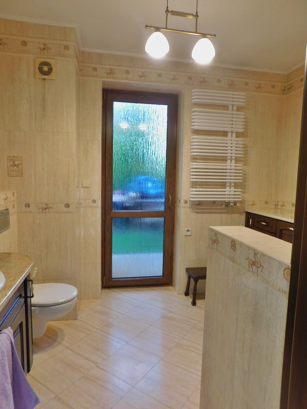 Wnętrze budynku charakteryzuje się wysokim standardem wykończenia i elegancka aranżacją pomieszczeń. W łazience i wc wysokiej jakości glazura i terakota.