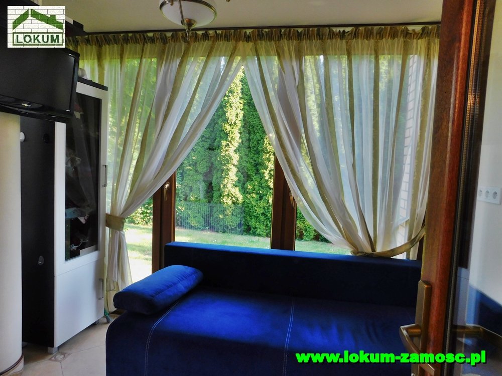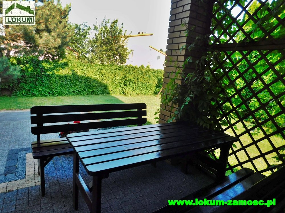 Działka o powierzchni 1406 m2 z licznymi nasadzeniami drzew i krzewów ozdobnych, na pozostałej części trawnik.Dodatkowym atutem nieruchomości jest to ,że dom usytuowany jest na działce o pow. 714 m2, pozostala część działki jest wyodrębniona i posiada osobny wjazd.