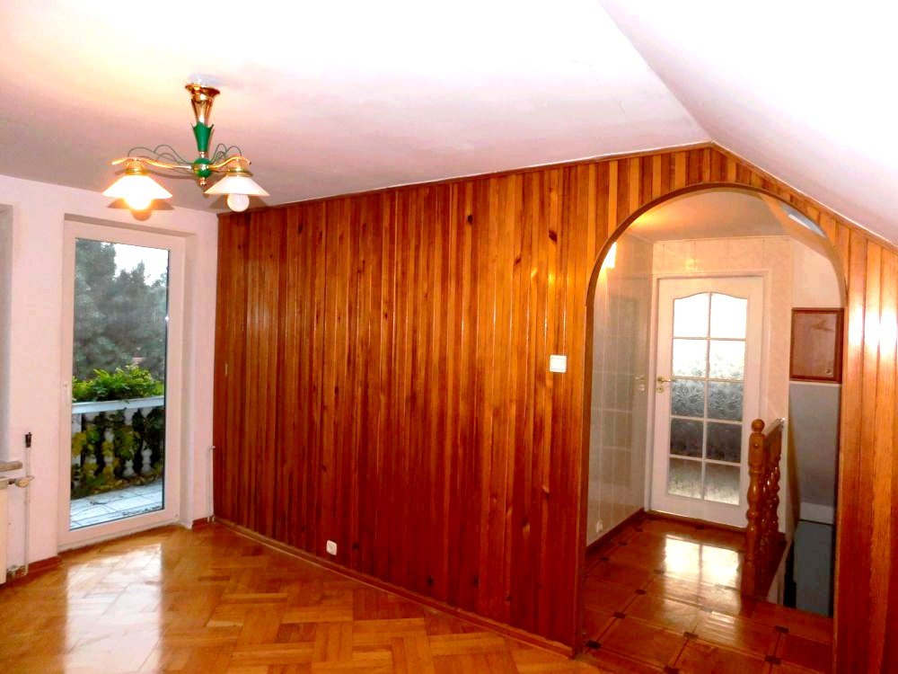 Na ścianach domu położono gładź, zaś na podłogach wyłożono panele oraz parkiet drewniany.