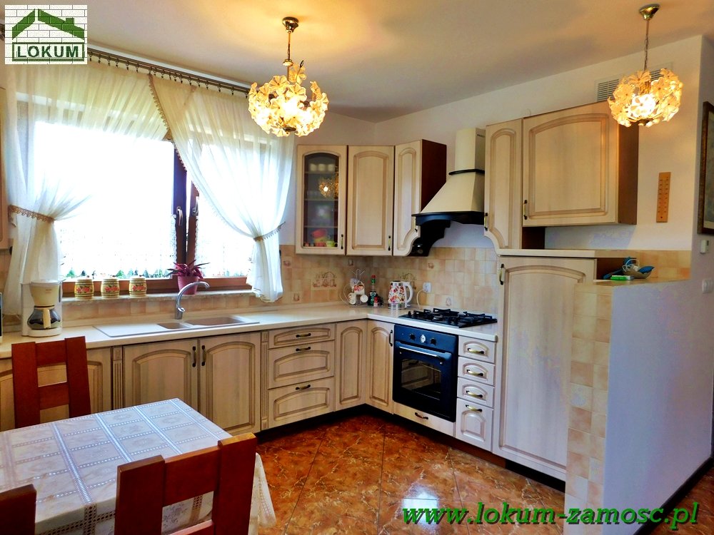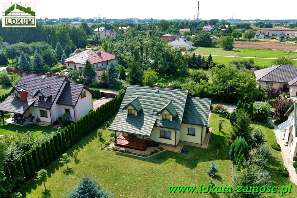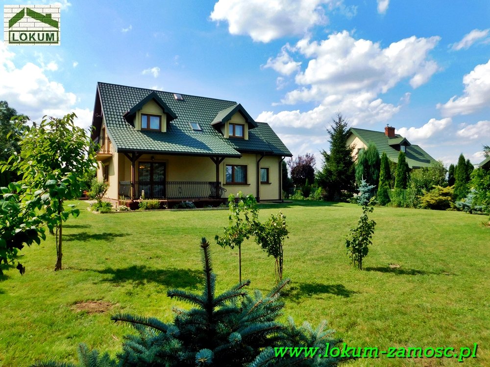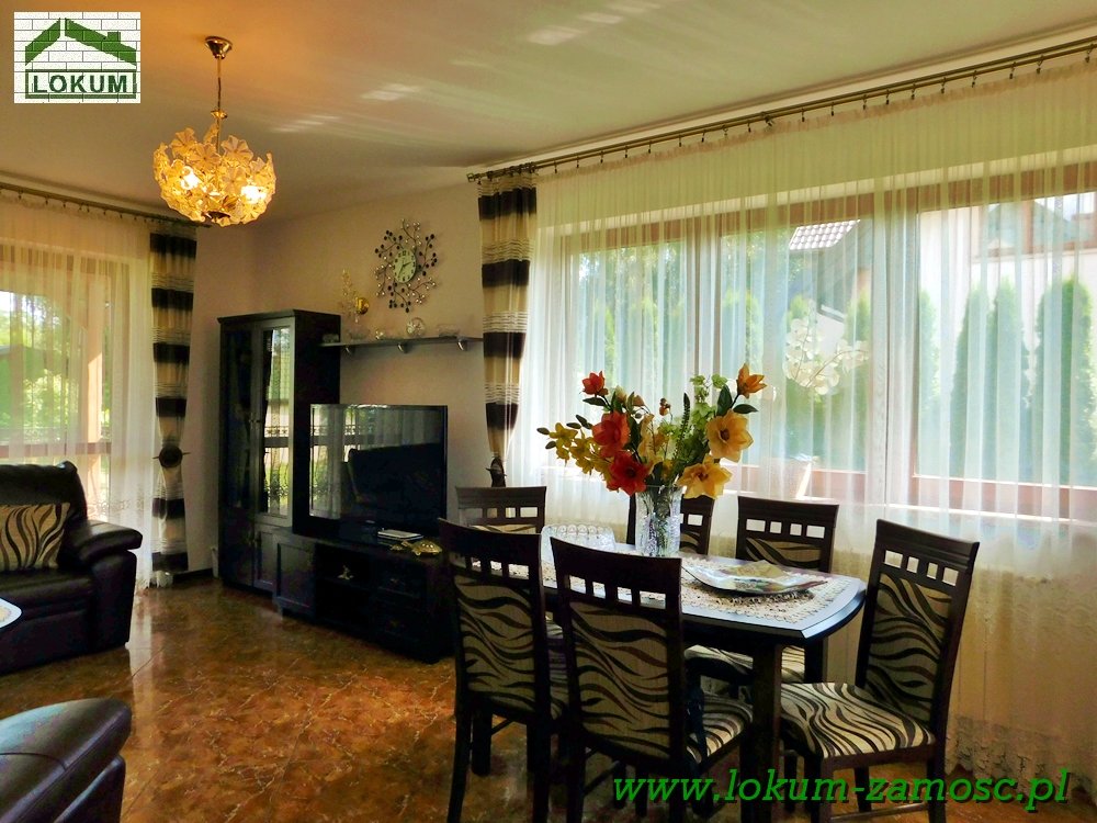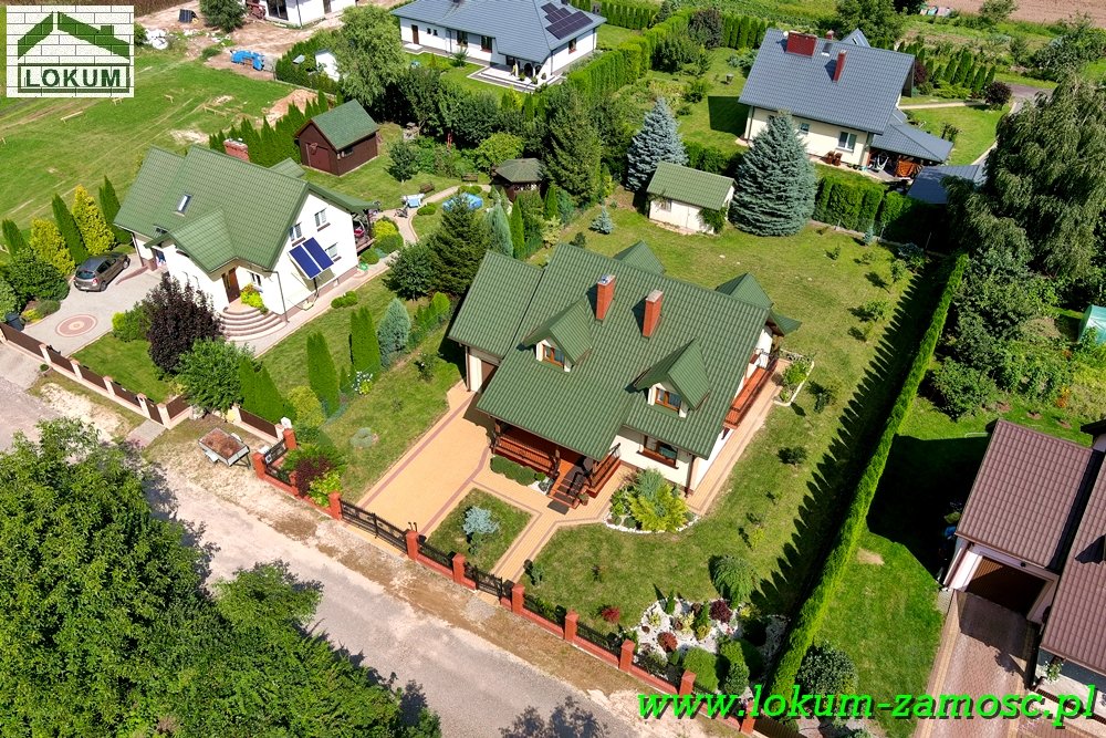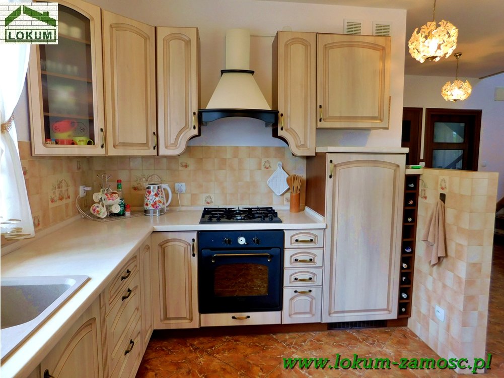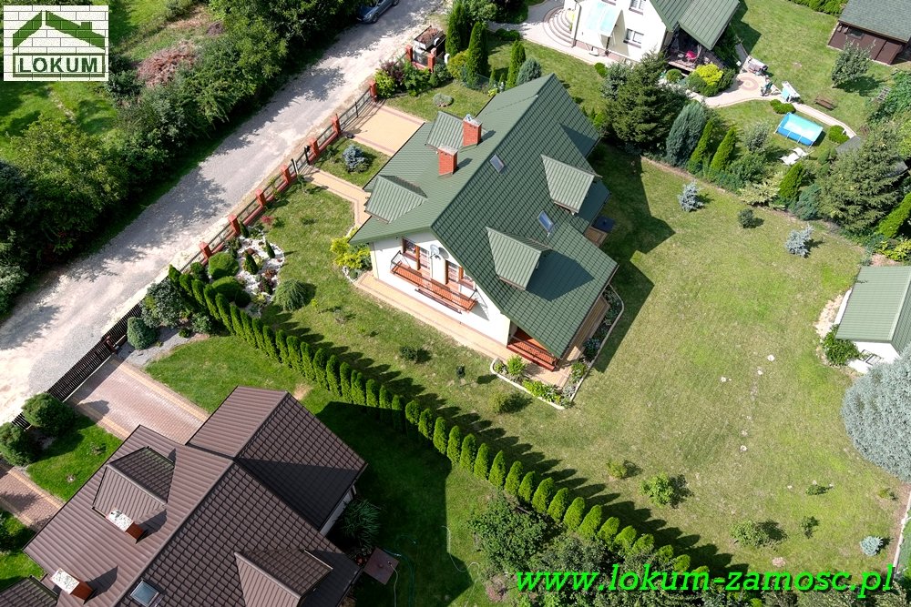 Na parterze znajduje się obszerny salon (z wyjściem na duży taras z tyłu budynku) oraz kuchnia , wiatrołap, hall, pokój, łazienka, pomieszczenie gospodarcze z wc , wiatrołap. Z poziomu parteru na poddasze prowadzą szerokie, solidne dębowe schody. Na poddaszu znajdują się 4 sypialnie (dwie z wyjściem na balkon), garderoba, hall oraz przestronna łazienka z wc.