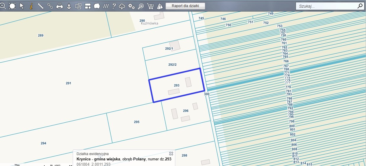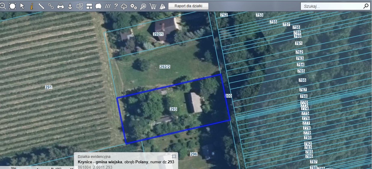 Nr ewidencyjny działki: 340/2, obręb Polany gmina Krynice.